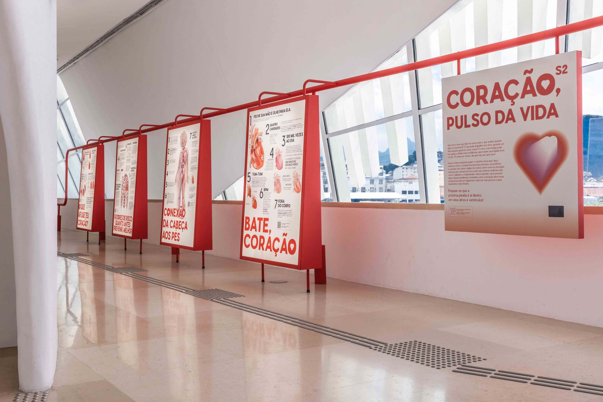 The Museu do Amanhã (one of Brazil’s largest museums) entrusted us with the creation of the visual identity and scenography for the exhibition S2 – Heart: The Pulse of Life, presented over nine months. In collaboration with architects, scientists, and developers, we translated the universe of the heart, health, well-being, anatomy, and poetry, into a pop and accessible language, inspired by social media, video games, and contemporary symbols. The result: an immersive experience that combines science and pop culture to spark emotional connection, reflection, and the desire to share, a true success with both audiences and critics.